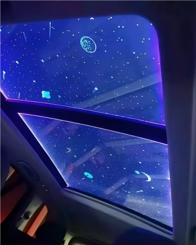 Этот продукт — высококлассная система фоновой подсветки, разработанная специально для салона автомобиля. Она включает в себя фоновую подсветку салона, потолочный светильник с эффектом звёздного неба и панорамную плёнку для люка. Это комплексное решение для обновления атмосферы вашего автомобиля, совместимое с большинством моделей. Благодаря сложной оптоволоконной технологии ослепительный эффект звёздного неба, напоминающий галактику, идеально проецируется на крышу автомобиля. Вы можете свободно настраивать цвет и режим звёздного неба в соответствии со своим настроением, мгновенно улучшая стиль салона и создавая романтическую атмосферу, даря водителям и пассажирам беспрецедентное визуальное удовольствие и захватывающие ощущения.